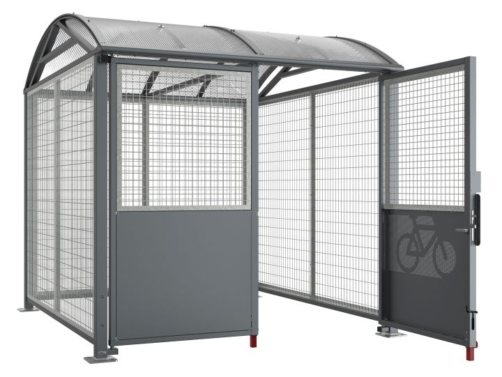 Longueur 2520 mm Structure : poteaux en acier 80 x 80 mm Toiture : traverses en tubes acier 60 x 40 mm et gouttières en aluminium, voûte en polycarbonate alvéolaire épaisseur 10 mm traité anti-UV Renforts de toiture anti-intrusion Extension possible par module de 2520 mm Finition peint sur galva. Pose sur platines Eclairage Led, support et appuis cycles en option.