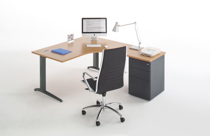 Option : goulotte d'électrification horizontale et piétement réglable en hauteur.