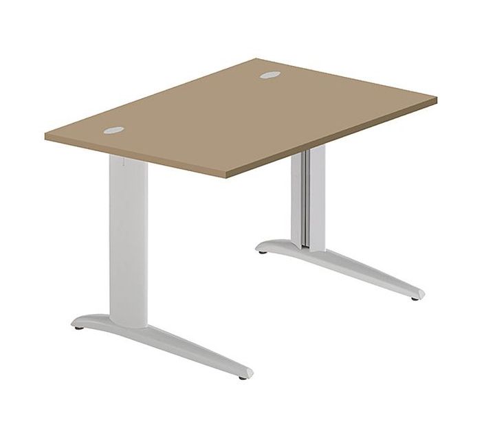 Piétement métallique à dégagement latéral avec passage de câbles vertical et voile de fond métallique .