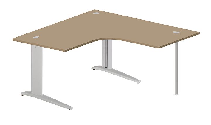 Bureau compact 90° symétrique à structure droite ou gauche. Plan stratifié épaisseur 25 mm avec chant droit ABS 2 mm coordonné. Obturateurs pour le passage des câbles. Piétement métallique à dégagement latéral avec passage de câbles vertical voile de fond métallique et piétement de renfort . Vérins de mise à niveau. Option : goulotte d'électrification horizontale et piétement réglable en hauteur. dimension : retours 800 mm hauteur plan de travail 730 mm