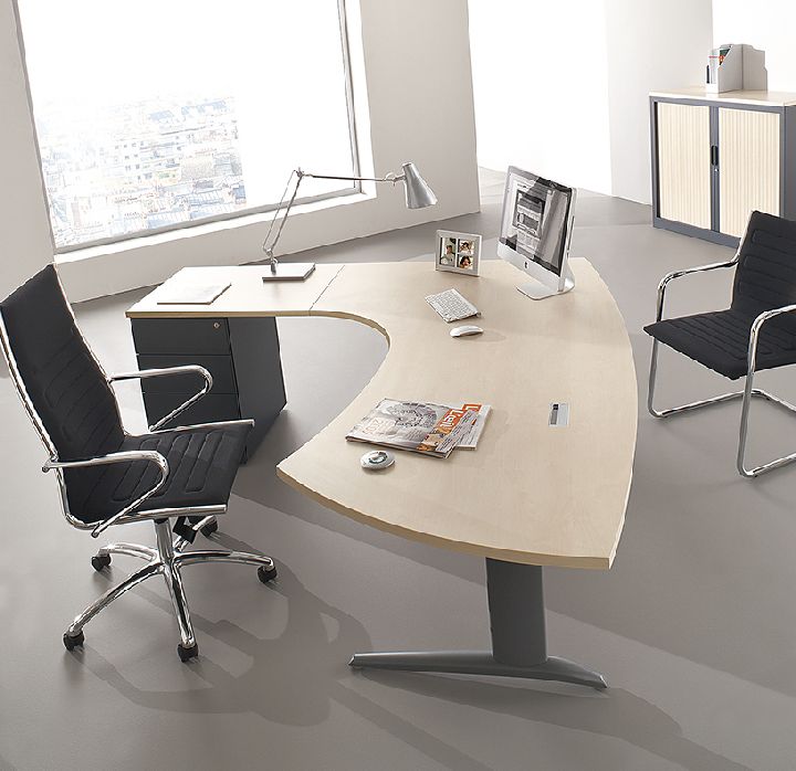 Bureau compact 90° intégral gauche. Plan stratifié épaisseur 25 mm avec chant droit ABS 2 mm coordonné. Obturateurs pour le passage des câbles. Piétement métallique à dégagement latéral avec passage de câbles vertical et voile de fond métallique. Vérins de mise à niveau. Option : goulotte d'électrification horizontale - piétement de renfort sous retour et piétement réglable en hauteur. dimension : retour 600 mm hauteur plan de travail 730 mm