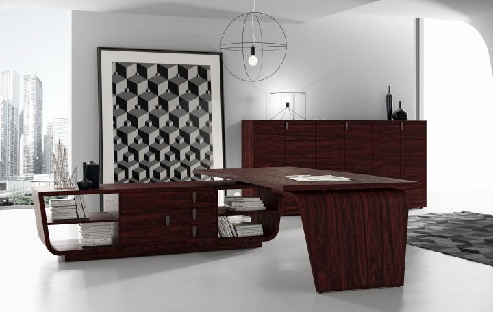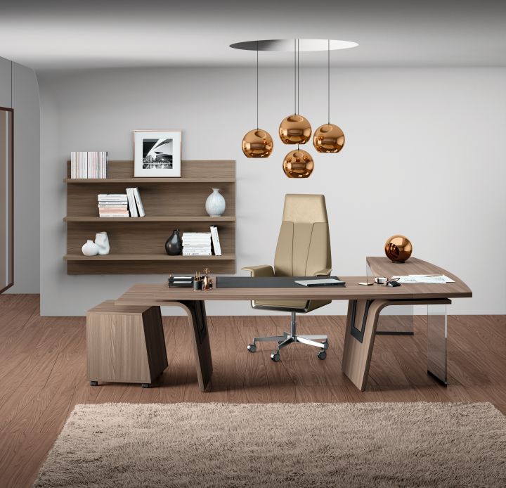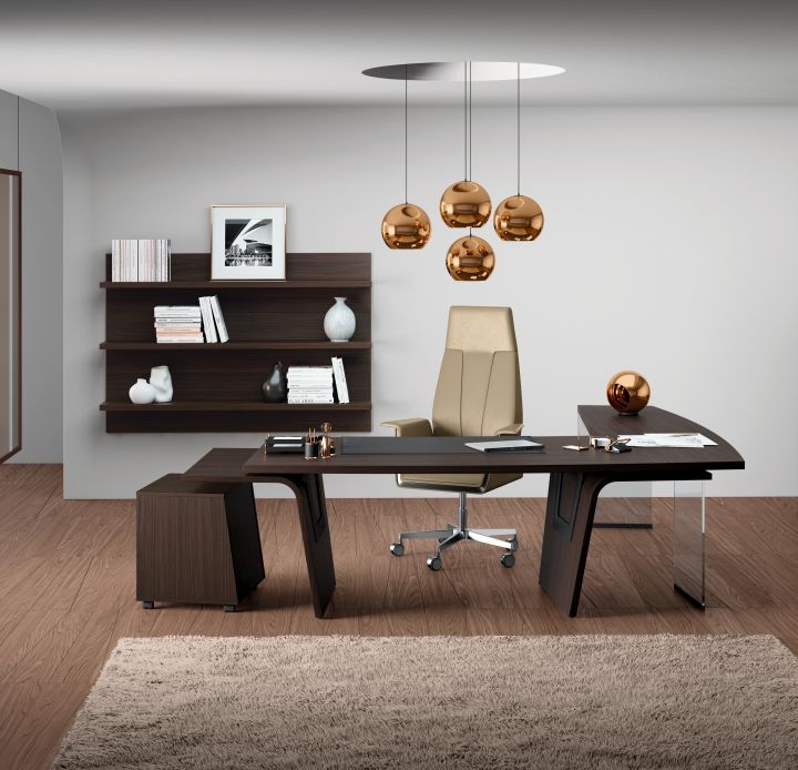 La beaut? et l'originalit? de la collection LARUS r?side dans la possibilit? de pouvoir assembler pieds, plateaux et supports dans plusieurs versions en r?alisant un syst?me de travail exclusif et unique. Bureau directionnel . Plan de travail bois - Pieds m?dium recouvert m?lamin? Dimensions : 1700/2100 x 900 mm - Hauteur plan de travail 750 mm. Coloris plateau : 4 coloris bois et 3 coloris verre - choix coloris pieds. Compositions et ?quipements aux choix. Options non comprises : meuble de service - rallonge - caisson fixe ou mobile - passe cables - texture pour voile de fond - sous main et inserts cuir.