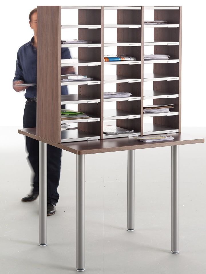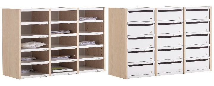 Syst?me modulaire pour les espaces destin?s ? la communication interne ou au tri du courrier Panneaux lat?raux en m?lamin? ?paisseur 22 mm avec chant en ABS 2 mm coordonn? Tablettes en acier r?glables tous les 3 cm Indexation sur chaque tablette Dimensions utiles d'une case : L30 x P33 x H10 cm