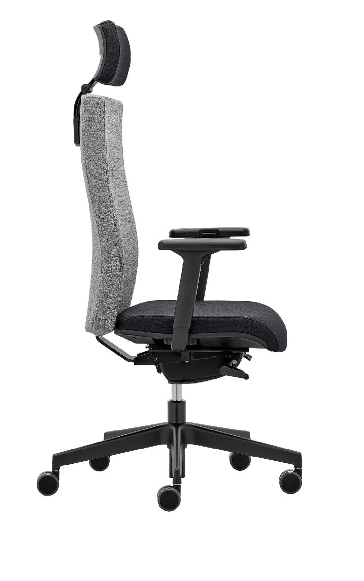 Si?ge de travail op?ratif (accoudoirs et t?ti?re non compris) Dossier et Assise rembourr?s ergonomiquement et recouverts de tissu gamme A M?canique synchrone avec le r?glage lat?ral ST1 : - r?glage en hauteur - blocage en 5 positions - r?glage lat?rale de la contre-pression du dossier (r?glable de 45 - 120 kg) - r?glage de profondeur d?assise 60 mm Pi?tement 5 branches ?????700mm polyamide noir Roulettes de 60 mm pour sol souple Dimensions : dossier largeur 450 x hauteur 560 mm - assise largeur 500 mm Options (nous consulter) : T?ti?re - Accoudoirs - Pi?tement aluminium poli - Roulettes pour sols durs - V?rin ? gaz amortisseur - V?rin pour r?gler la hauteur de l'assise de 450 ? 570 mm - Autres gammes et styles de rev?tement