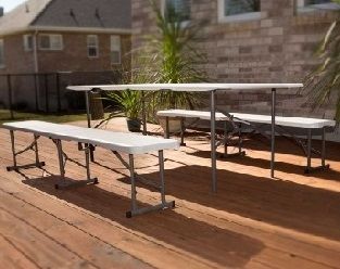 Lot de 2. Plateau en poly?thyl?ne moul? haute densit? (HDPE) ?paisseur 43 mm avec coins renforc?s coloris beige clair. Tubes ? 25 mm en acier avec traitement anti-corrosion et thermolaquage trait? ?poxy coloris gris. Pieds ?quip?s de patins anti-bruit en caoutchouc. Syst?me de verrouillage pour maintien en position ouverte. Pour 6 ? 8 personnes. Poids 7 kgs. Classification au feu M2 (certification fran?aise LNE). Utilisation int?rieur/ext?rieur. GARANTIE 2 ANS