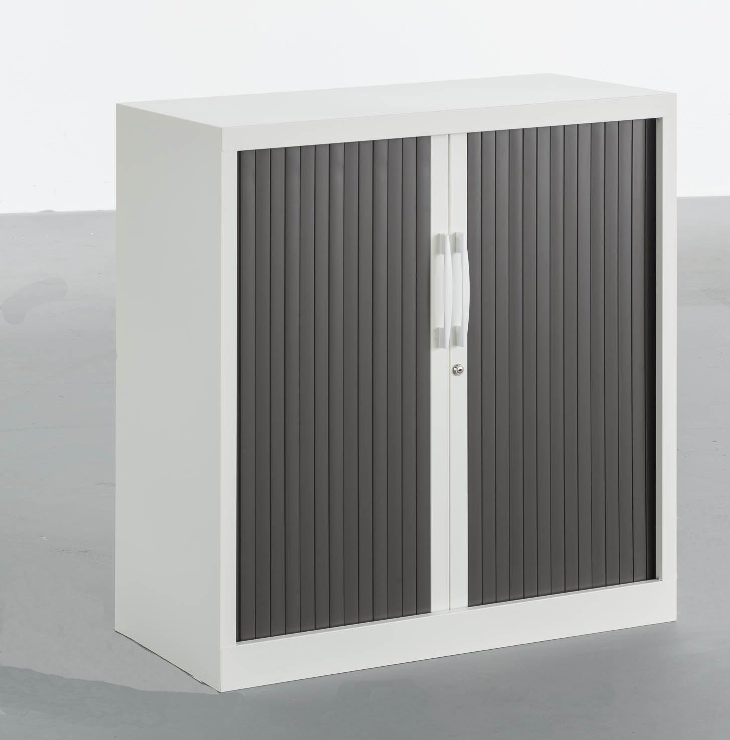 Armoirette de rangement métallique monobloc avec revêtement poudre époxy.