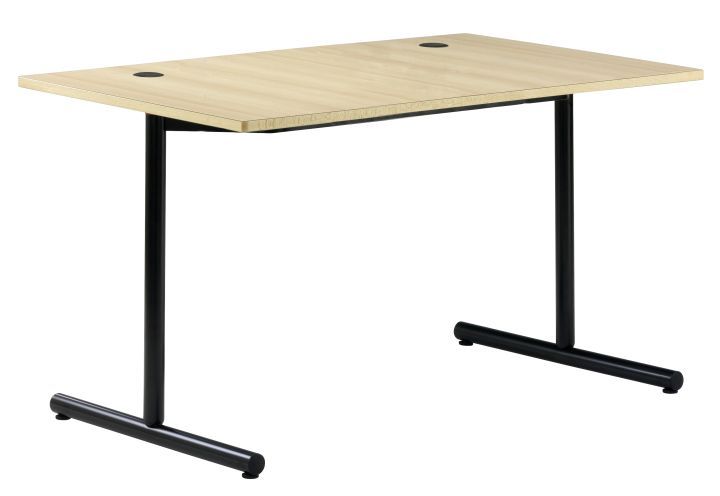 Plateau stratifié épaisseur 24 mm avec chant PVC et 2 passe-câbles. Cadre métallique soudé sous plateau avec piétement à dégagement latéral de section ronde 45 mm. Equipé de vérins de mise à niveau. Option kit liaison inter table. Sur demande disponible en plateau mélaminé à chant PVC