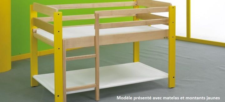 Coloris disponibles pour les montants : Bleu, Framboise, Jaune OU Vernis naturel **Lit homologué en maternelle.