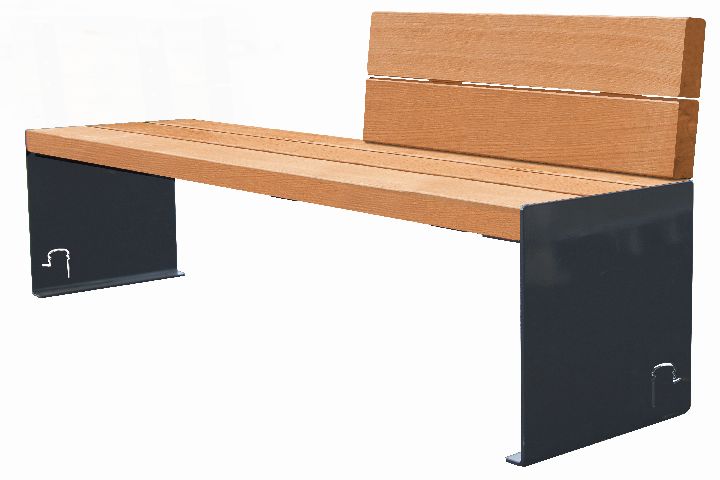 Piètement en acier massif 450 x 450 mm épaisseur 8 mm en finition peinture RAL standard sur zinc. Assise et dossier en chêne épaisseur 60 mm en finition lasuré chêne clair. Non monté. Pose par scellement avec tiges d'ancrage fournies. Dimension : hauteur 758 mm (hors sol) 450 mm (assise) x longueur 1800 mm. OPTIONS (nous consulter) : montage, finition sablée.