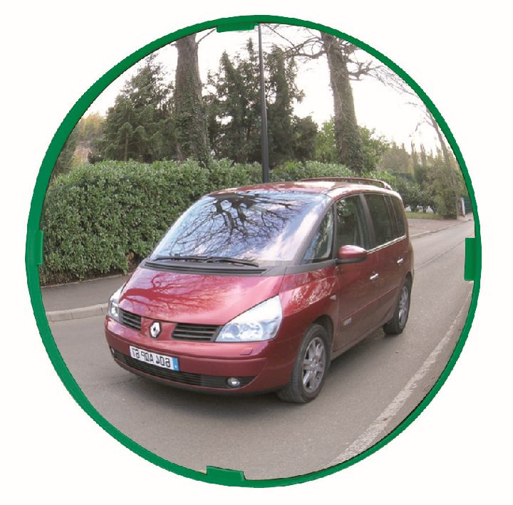 Distance maximum de l'utilisateur au miroir environ 11 mètres. Optique Ø 600 mm. Contrôle 2 directions pour une vision à 90° environ. Résistance au vent jusqu'à 183 km/h. Qualité Polymir 3 ans de garantie (incassable, indéformable, anti-UV). Fixation universelle comprise pour murs et poteaux ronds (Ø60 à 90mm).