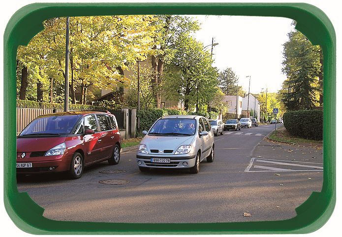 Distance maximum de l'utilisateur au miroir environ 20 mètres. Optique 600 x 400 mm. Contrôle 2 directions pour une vision à 90° environ. Résistance au vent jusqu'à 183 km/h. Qualité Polymir 3 ans de garantie (incassable, indéformable, anti-UV). Fixation universelle comprise pour murs et poteaux ronds (Ø60 à 90mm).